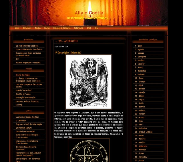 Recupera-se sua própria dignidade presente diante da farsa milenar do ridículo. A dignidade de nunca mais ser burro pensando em escrever por “Astaroth”, um bichinho do mal. Escrever por Inana, por Enheduana. Por um ritual mais antigo e poderoso, bem como muito mais bonito, do que qualquer coisa que a goétia e a demonologia cristã possam elaborar. Um ritual de poesia.